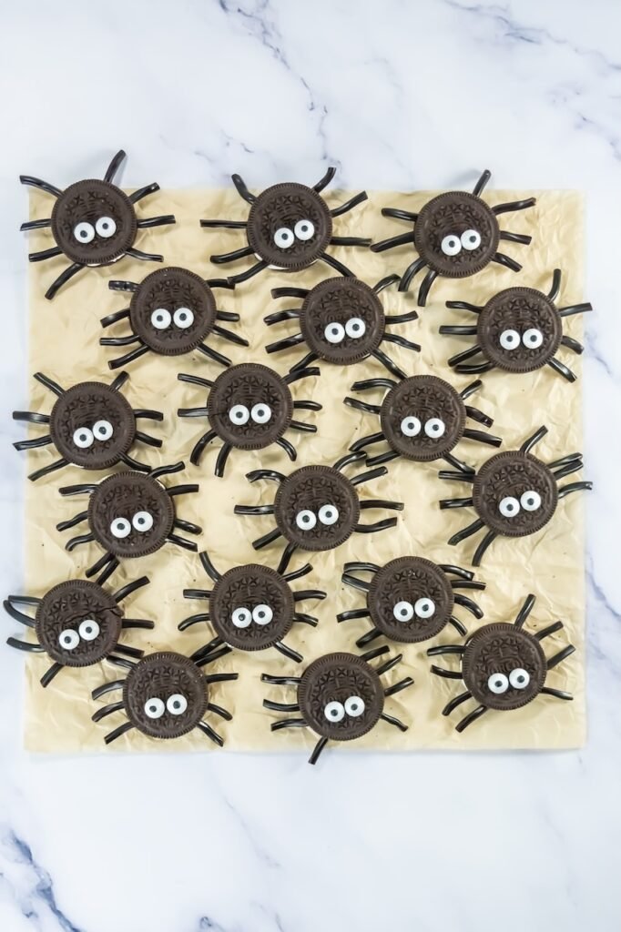 - Play with the filling: Regular Oreos are great, but Halloween Oreos with orange filling make these spiders extra festive.